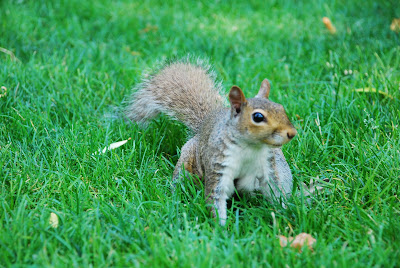 Dans un parc, avec Jeanne, nous avons fait la rencontre d'un écureuil particulièrement... dingue ! Il était à quelques pas de nous, nous regardais, puis sautais dans tout les sens, se roulais par terre, ressautais, tournais en rond, genre il faisait son show, absolument hallucinant et tellement drôle !