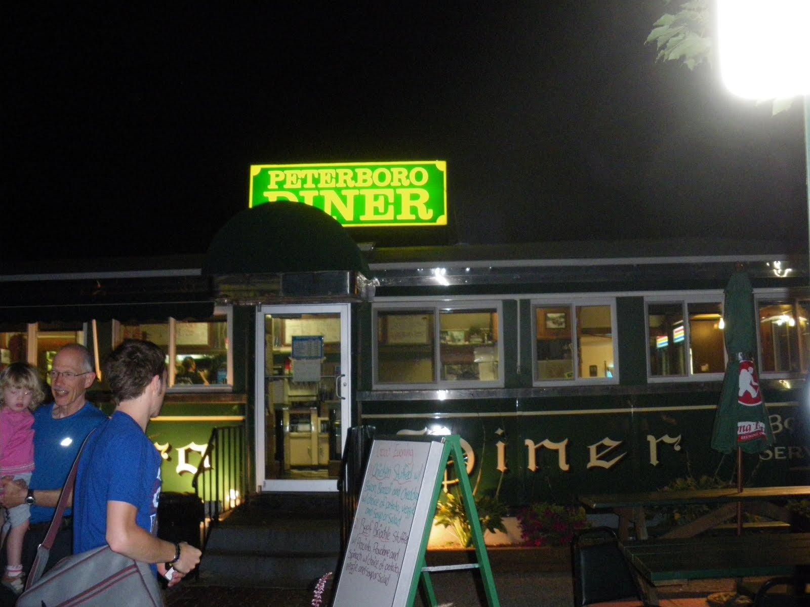 Un soir nous sommes allé manger un burger dans une place typique américaine, genre vieux trailer, au bord d'un parking, sièges aux bar, nourriture de merde excellente, le Peterboro's Diner.
