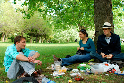 Une fois installés au pied d'un arbre, au bord du "lac des castors", il était bon de se faire un picnic bien mérité après ces heures de marche. Heuresement que les globe-trotters expérimentés que son Yannig et Mélissa avait prévu le pain, les oeufs, les poivrons, les sardines, les feuilles de vigne, les tartes au pomme-banane-poire-amande (faites par Yannig himself, miaaaam) car nous n'avions que quelques fruits achetés rapidos sur le chemins !